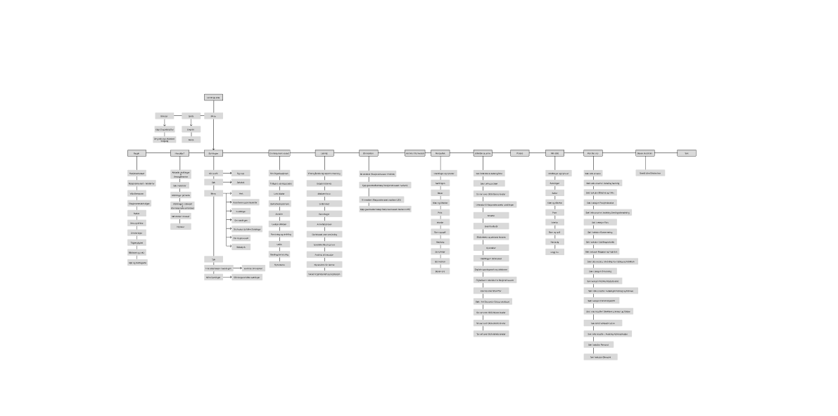 For å forstå den eksisterende løsningen bedre, laget vi en informasjonsarkitektur av nettsiden. Vi oppdaget at siden var veldig kompleks, med mye informasjon som måtte struktureres på en logisk og intuitiv måte for et bredt publikum.
