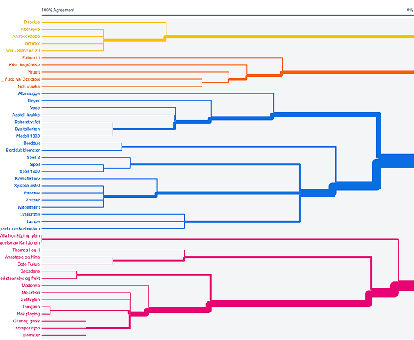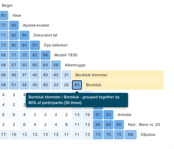 Med mål om å forstå hvordan folk kategoriserer kunstverk og hvilke navn de gir disse kategoriene, gjennomførte vi en kortsorteringstest. Analysen av testen viste følgende: